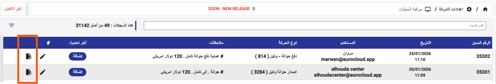 تم تحسين آلية فتح أصل الحركة عبر شاشة مراقبة العمليات، بحيث أصبح بالإمكان الانتقال مباشرةً إلى استعراض الحركة الأصلية دون خطوات إضافية، مما يسرّع عملية المتابعة ويُحسّن تجربة الاستخدام ويعزّز كفاءة المراقبة والتدقيق.