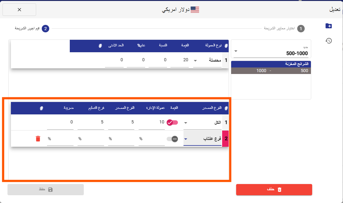 عند تفعيل هذه الميزة على زوج عملات معيّن، يتم تطبيقها إلزاميًا على كافة شرائح الأجور المرتبطة بنفس زوج العملات، ولا يمكن الجمع بين شرائح تحتوي على توزيع نسب وشرائح بدون توزيع ضمن نفس الزوج (إما تفعيل كامل أو عدم تفعيل).