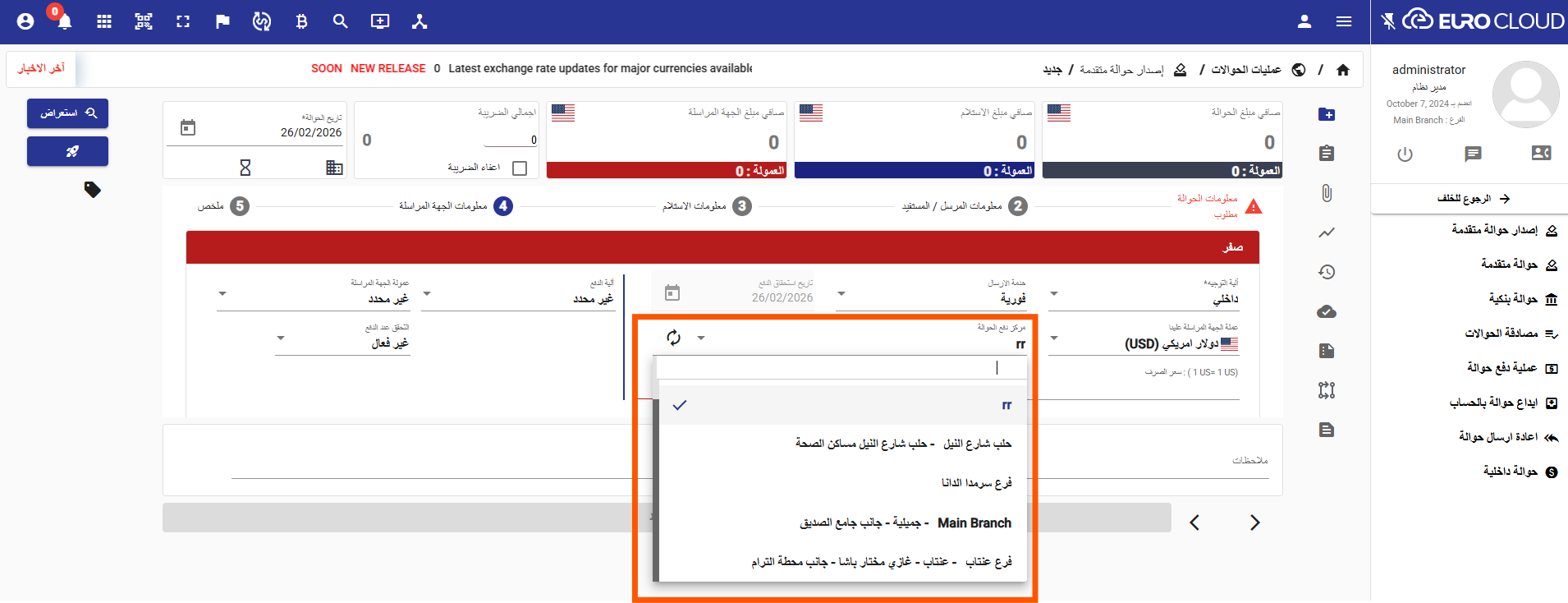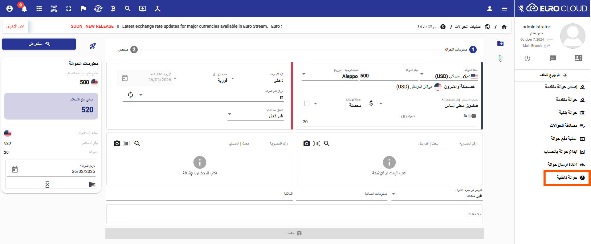 تم إطلاق ميزة إصدار حوالة داخلية مع إعادة تصميم الصفحة بما يتناسب مع الشركات التي تعمل بفروع داخلية وبعملة واحدة.