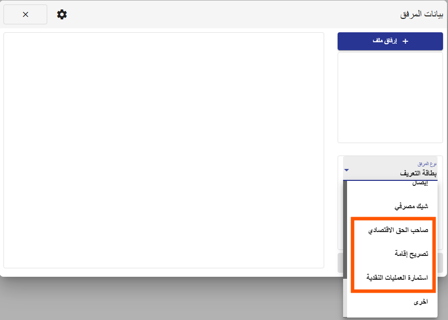 تم تحسين دعم متطلبات هيئة مكافحة غسل الأموال (AML) من خلال إضافة أنواع جديدة من المرفقات ضمن النظام، تشمل: